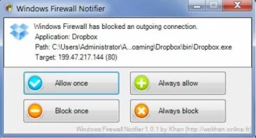 Y bajo esa información, las cuatro opciones posibles de Firewall Notifier son: “Permitir una vez”, “Permitir siempre”, “Bloquear una vez” y “Bloquear siempre”.