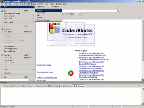 Code::Blocks es una IDE en C++ que puede ser configurada para trabajar con numerosas aplicaciones tanto comerciales como de licenciamiento libre para compiladores C++, facilitando así el inicio y la creación de los mejores códigos ejecutables. Se integra muy bien con Gnu Debugger (GDB) para corrección en tiempo real en pantalla. Incluye el compilador GCC y el depurador GDB.