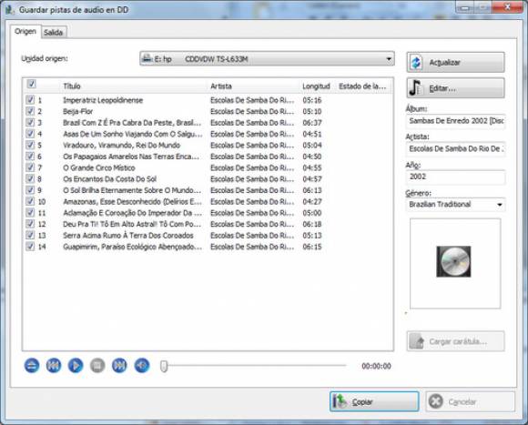 8. La información será actualizada en la ventana "Guardar pistas de audio en DD".
