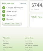 Pero si se monta este esquema en la Web, la cosa cambia, y parece que cambia de verdad. En Kiva, cualquier usuario con su tarjeta de crédito o su cuenta de pagos electrónicos de PayPal.com, puede convertirse en un prestamista con tan sólo 25 dólares.