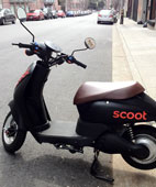 Se trata de la start-up Scoot Networks, la cual quiere ofrecer a los usuarios una forma barata y ecológica de moverse por la ciudad usando motos eléctricas. Estas motos tipo scooter poseen un toque de tecnología, ya que incluyen un puerto cubierto de plástico para acoplar teléfonos inteligentes. Los usuarios acoplan sus iPhones (los teléfonos Android podrán usarse más adelante) y el teléfono actúa como si fuera las llaves de arranque.