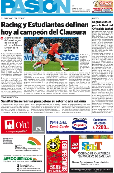 FUTBOL DEPARTAMENTALJáchal define a su campeón con un gran clásico: Racing-La EstrellaPor Ariel Poblete