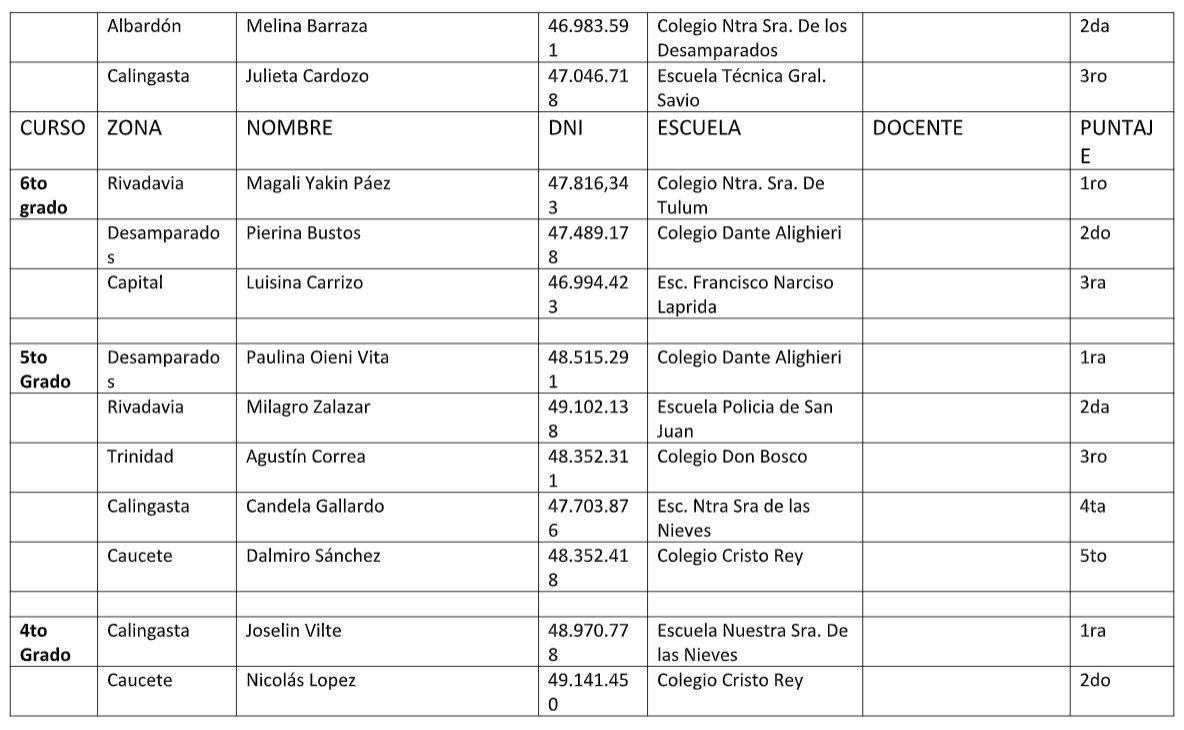 Los clubes rotarios de San Juan, Rotary Club Retama, Rotary Club Caucete, Rotary Club Desamparados, Rotary Club Rivadavia, Rotary Club Rawson, Rotary Club Trinidad coordinados por Rotary Club San Juan Capital organizaron el “XV Certamen de Lectocomprensión” en el que participaron alumnos de toda la provincia de los departamentos de Albardón, Angaco, Calingasta, Capital, Caucete , 9 de Julio, Rivadavia, Santa Lucía, San Martín, 25 de Mayo, Ullúm y Zonda.
