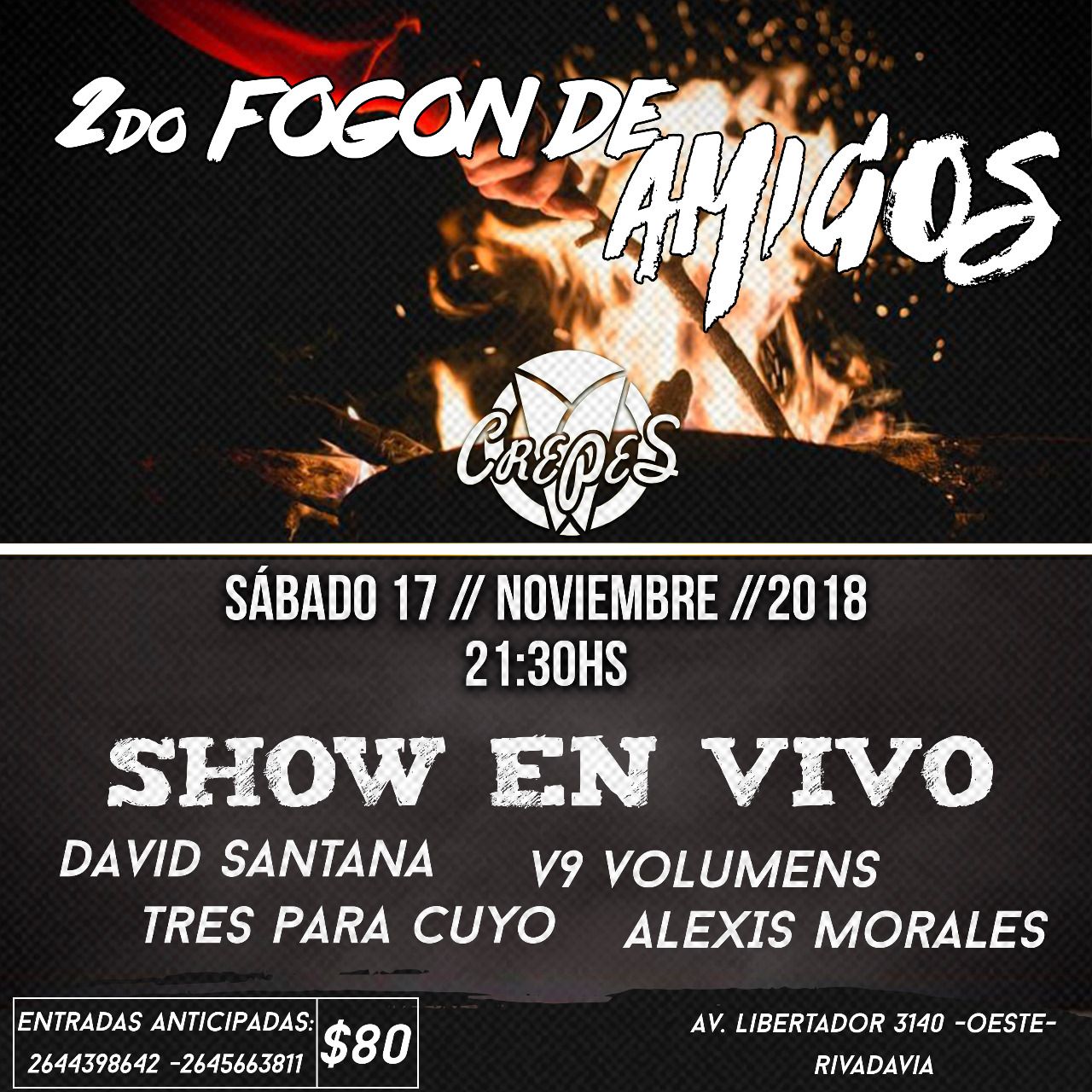 Se viene un sábado imperdible en CrepeS con el Fogón de Amigos. Preparate para disfrutar de una peña inolvidable, en donde la mejor gastronomía y los mejores artistas se conjugan para hacerte vivir una noche genial!
