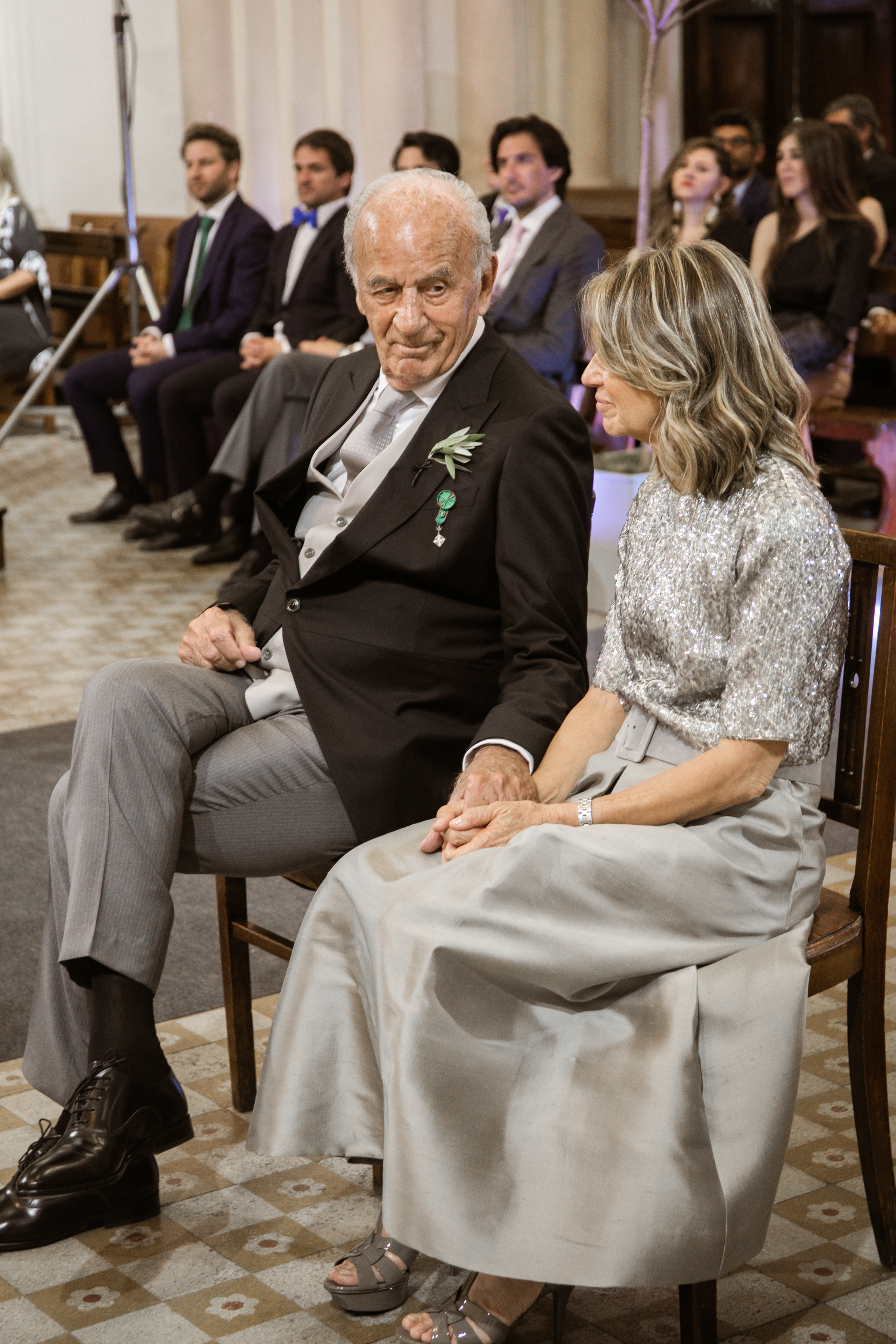 La ceremonia religiosa comenzó a las 17, con la entrada de Francisco Javier y su mamá Pilar de la Fuente Orduña, según la tradición española. En el altar lo esperaba su papá, Javier Cocheteux Tierno y la mamá de Mili, María Cecilia Zunino de Senetiner.