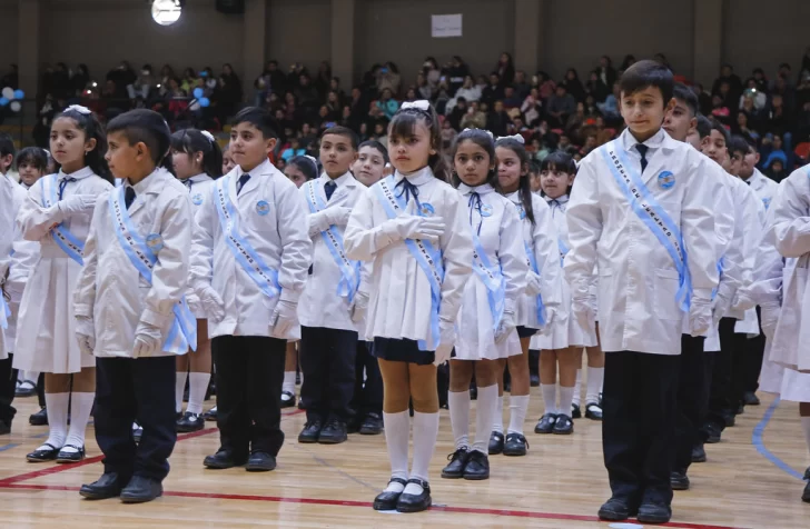 Un centenar de niños del Nivel Primario participaron del acto de Promesa de Lealtad a la Bandera que se realizó en el Complejo La Superiora de Rawson.
