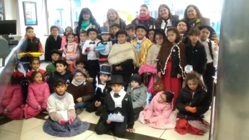 Caracterizados como hombres y mujeres de la época, estudiantes de segundo grado de la Escuela Barrio Parque Rivadavia Norte visitaron el diario. Los docentes comentaron que estuvieron por la Peatonal repartiendo escarapelas dentro de lo que se encuadra en un proyecto institucional. Los docentes que acompañaron fueron Claudia Corbalán 2°"A", Mabel Pérez 2°B, Estela Acosta 2° C, Adriana Jácamo 2"D"