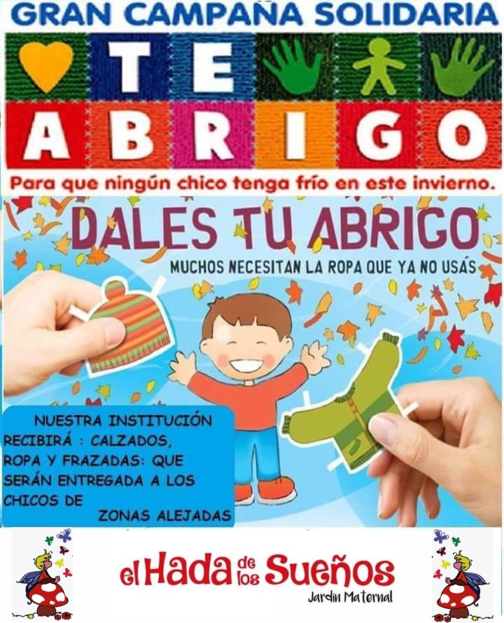 El Jardín Maternal "El Hada de los Sueños", ubicado en Trinidad, se encuentra realizando una colecta de ropa, calzados y frazadas para donar a chicos de zonas carenciadas de Jáchal. Todo lo recaudado será entregado en mano al doctor Raúl Aguilera, quien será el encargado de distribuirlo.
