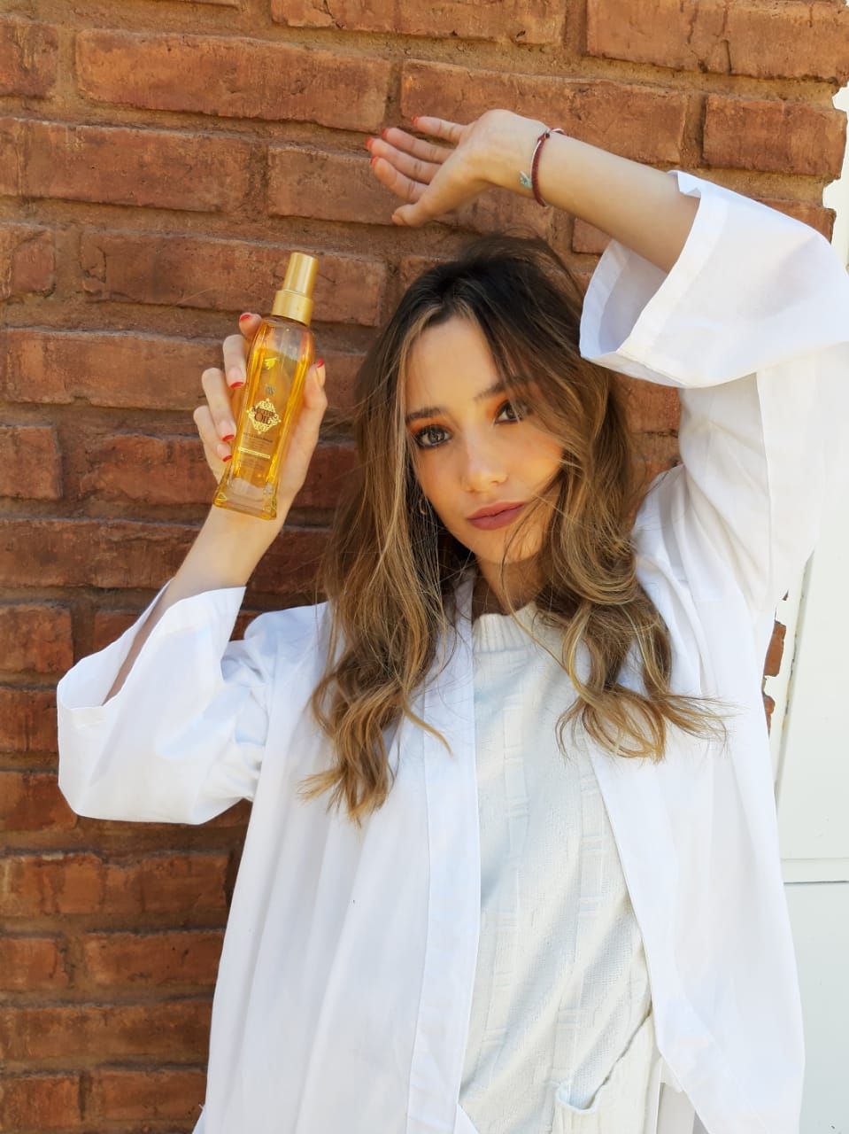 El propósito de los aceites es hidratar, nutrir, dar brillo y textura al cabello, además de controlar el molesto frizz, que puede ser indomable a la hora de peinarlo. Para este caso en particular, Natalia recomienda usar aceites para hidratar el cabello, por ejemplo, aceite de Mitchic Oil, que penetra de manera inmediata en la fibra capilar y la nutre intensamente disciplinando el cabello y aportando brillo.