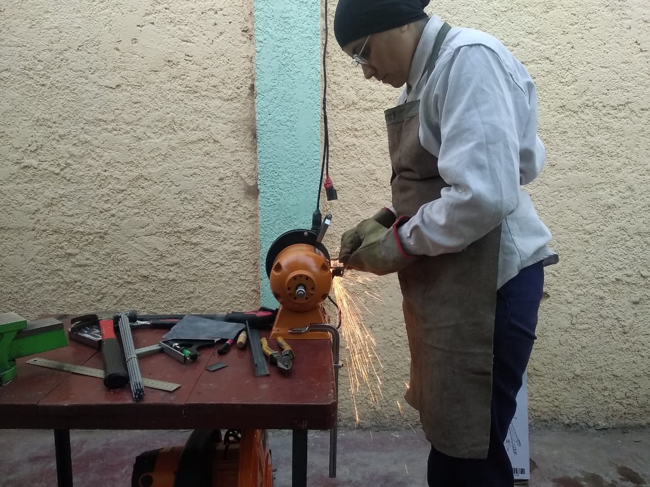 "Pude armar mi taller. Me compre una amoladora, una soldadora, un torno, esmeriles. Eso me dio independencia y así tuve que dejar de pedir prestado o de recurrir a talleres amigos. Ahora soy yo la que trabajo para ellos y les soluciono sus problemas" explica la mujer que hace desde ventanas hasta decoraciones para piletas.