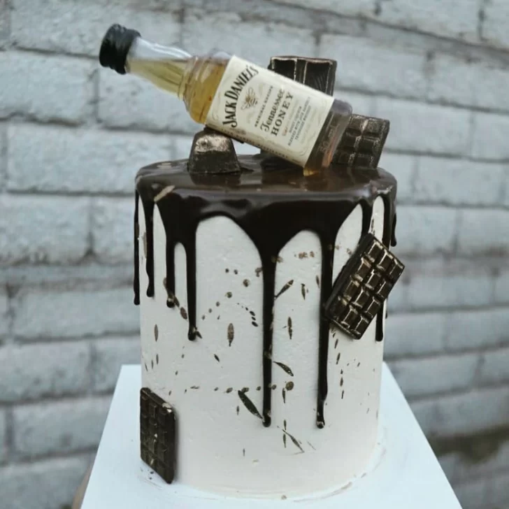 Constanza que cocina desde pequeña pero que se perfeccionó estudiando en el Instituto Gastronómico Argentino, hizo cursos en Mendoza y Córdoba y complementó su vocación pastelera con un título de Bromatóloga- ha programado varias opciones con las botellitas como protagonistas para regalarle a los papás: por un lado, las mini drip cakes (que reciben ese nombre por ser tortas cubiertas con una ganache o crema que cae chorreando o goteando), a base de un bizcochuelo tipo budín, rellena con dulce de leche y crema Bariloche (dulce de leche con chocolate y manteca o crema de leche), decoradas con buttercream y ganache de chocolate, chocolatines y la botellita elegida. Cuestan 600 pesos y alcanzan para unas 6 porciones generosas. Vienen en cajas con una tarjeta alusiva a la ocasión.