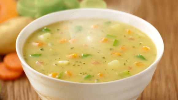 Ingredientes: 4 cucharadas de aceite de oliva;1 cebolla mediana finamente picada;1 zanahoria picada en cubitos;1 tallo de apio picado; 6 vasos de agua -puede ser reemplazado por caldo de pollo-; 1 papa grande pelada y cortada en cubitos; 1 dientes de ajo; 2 tomates picados; 1 hoja de laurel; 1 taza de fideos o arroz.