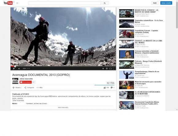 Este documental realizado por Julián Insarralde muestra toda la expedición al Cerro Aconcagua (6.965 metros sobre el nivel del mar) a través de una cámara “go-pro”.