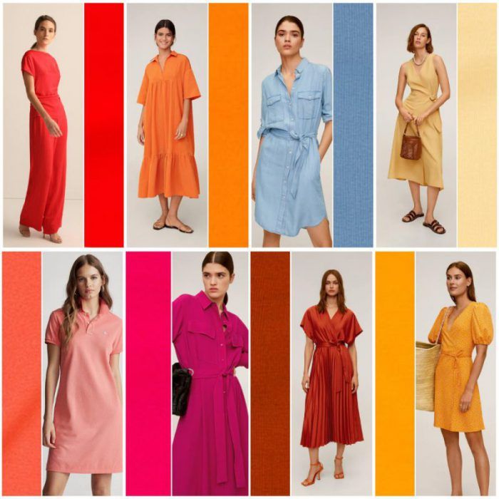 Sí bien nos extenderemos en este tema en nuestro especial Colores de moda primavera verano 2021, por lo pronto podemos adelantar una paleta cromática prominente, que sin olvidar neutros y los infaltables blanco y negro, navega ampliamente en la gama de los verdes, incorpora intensos amarillos, variantes del rosa, naranjas, vibrantes rojos, y llega a la gama de los azules desde el azul noche pasando por el denim hasta el celeste claro, el púrpura encuentra lugar, y el lila aparece en escena como uno de los candidatos a favoritos de la moda del verano 2021. Delicadas versiones pasteles hacen también su aporte. Tonos neón al igual que los dorados buscan espacio en los acentos tanto en indumentaria como en calzado y accesorios