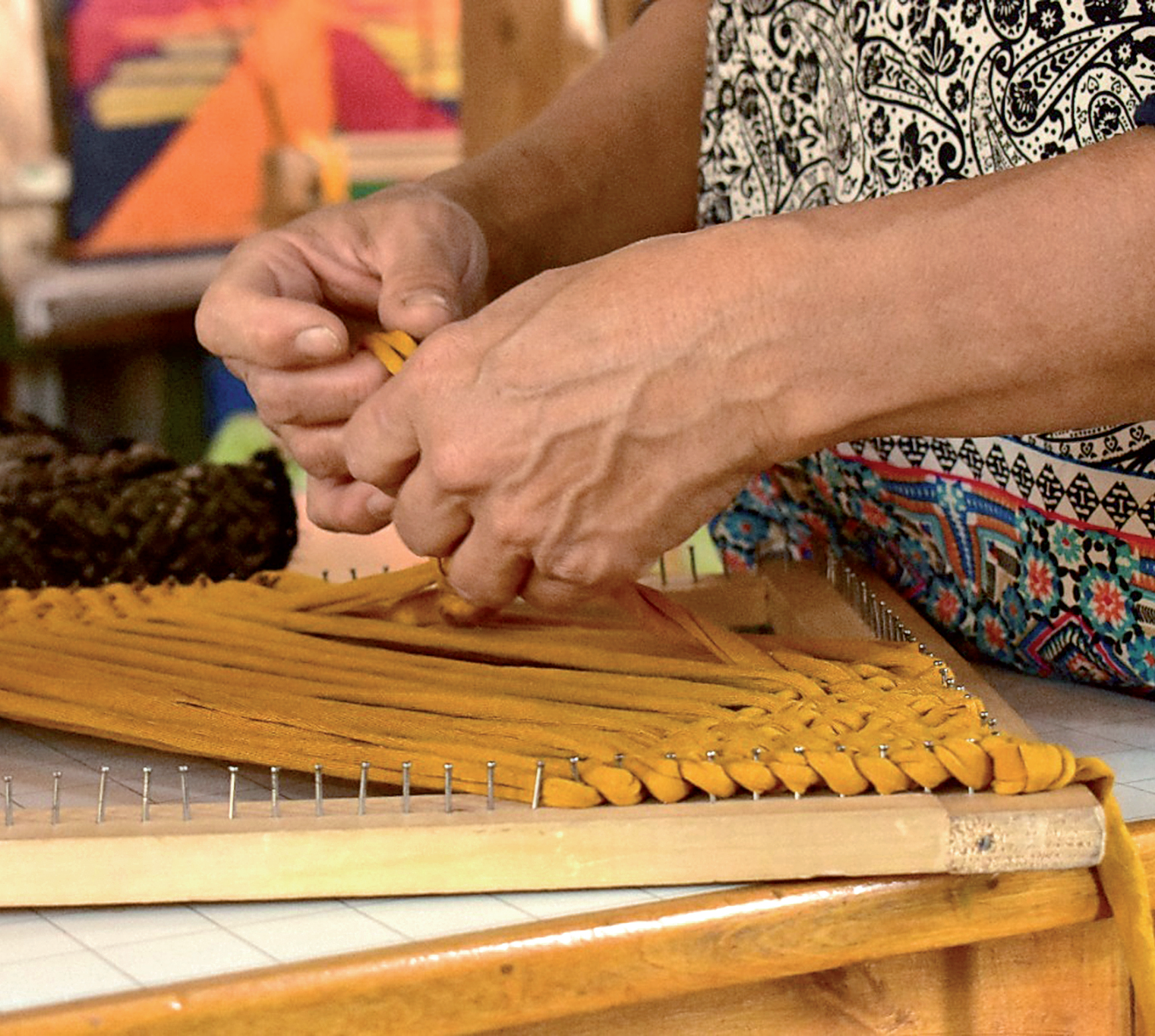 "Tejo desde que tengo uso de razón. A decir verdad, tejo desde muy chiquita. Mi mamá se sentaba y me enseñaba los puntos de crochet primero y a medida que fue pasando el tiempo me fue compartiendo sus conocimientos a dos agujas, bordados y todo lo que ella sabía de esta técnica ancestral de tanta sabiduría. Yo siempre la miraba tejer y la imitaba. Ella fue mi gran maestra", cuenta Eugenia que reconoce que luego de los aprendizajes maternos encontró otras personas generosas que le compartieron sus saberes como sus docentes en Australia, su prima Graciela Villarino, dos grandes artistas textiles como Myriam Atencio y Guadalupe Daneri, sus compañeras del grupo "Las Arañitas" y del Colectivo Textil del Sur. También los varones que integran los llamados "Tejedores del desierto", a los que admira. Inclusive las tejedoras tradicionales de la provincia (como Doña Tomasa de Tudcum, Herenia Moyano de 25 de Mayo) y de otras latitudes (como Inés González de La Rioja o Emeterio, un famoso telero jujeño, entre otros del norte argentino, de Bolivia y Perú). Y también Youtube, otra fuente inagotable de transferencia de conocimientos.