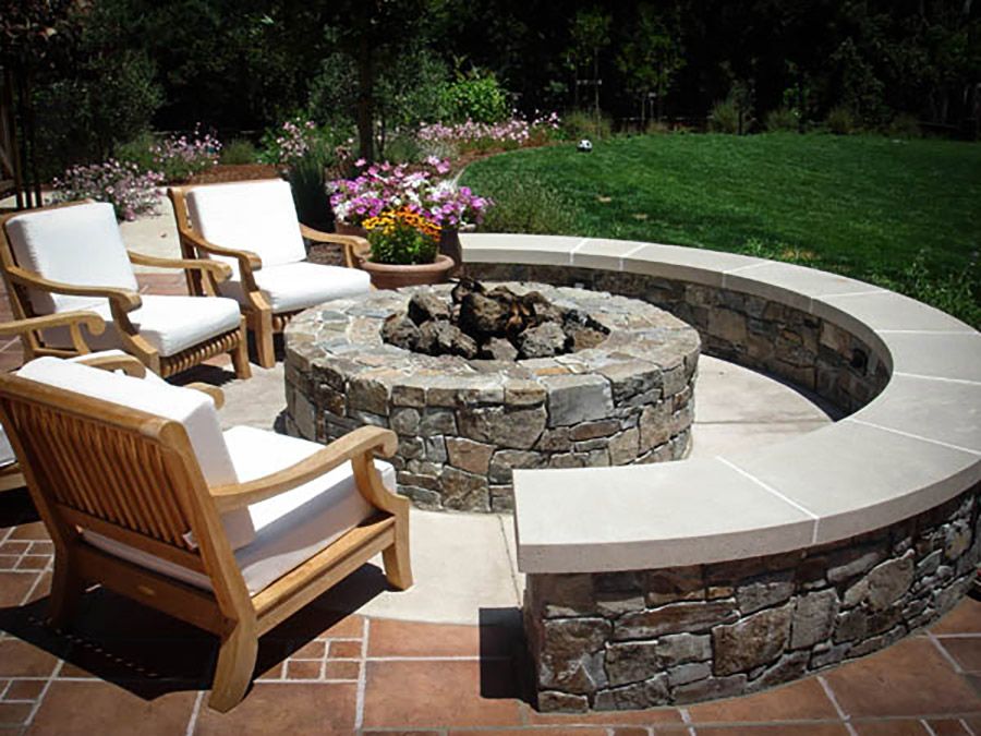 Una idea simple y de bajo presupuesto: un fogonero armado con piedras de la zona, sobre un suelo cubierto de piedra partida, y dos medio círculos con bancos de piedra y asiento de cemento. Pura sencillez para disfrutar del fuego.