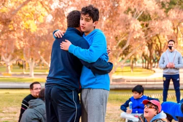 "Hace unos días tuve una reunión con los papás de los participantes. Les preguntaba que es lo más significativo que tiene este espacio. Y todos coincidían en que por fin aquí encontraron a su grupo de amigos. Ellos no valoran el deporte, la competencia, ni los profes. Para estos chicos lo más importante es su par, su amigo. Eso me emociona muchísimo. Quizás porque con un poco de egoísmo, yo valoro tanto a mis amigos, son tan significativos en mi vida que no me imagino ni un día sin ellos. Pero a su vez los quiero tanto a estos chicos que me propuse desde el primer momento romper los esquemas y hacer todo lo posible para que tengan la posibilidad de tener amigos. Al fin y al cabo, las actividades son una excusa. Si bien el deporte, la música, la actividad y lo terapéutico los ayudan, lo mejor que puede pasarles en tener amigos. Claro que para eso primero hay que dar algunos pasos: se deben registrar, saber los nombres, saber quién es quien, que les gusta, que hace el otro, que quiere compartir. Para ellos que están tan metidos en sí mismos es muy importante que vivan todos estos procesos. También es importante que el resto de la sociedad lo vea, lo comparta, lo fomente”, explica Leo Jiménez.
