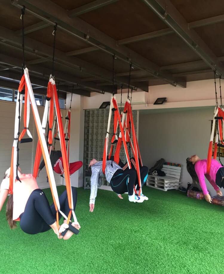 De las clases, puede participar cualquier persona, sin siquiera haber practicado ni una vez esta práctica con raíces milenarias. Esto es así porque hay tres niveles de trabajo: el nivel 0 restaurativo y terapéutico que parte del cuerpo en el suelo y está propuesto para quienes necesitan recuperarse de lesiones y aprender a usar correctamente del trapecio. Un nivel 1 de tonificación y suspensión media hiperextensiones, en dónde se practican las primeras posturas aéreas a una altura prudente para trabajar en la flexibilidad y corrección de la postura del cuerpo. Y un nivel 2, acrobático suspensión avanzada que tal como su nombre lo indica, se hacen acrobacias en el aire porque el cuerpo ya ha alcanzado cierto grado de acondicionamiento, fortaleza y equilibrio.