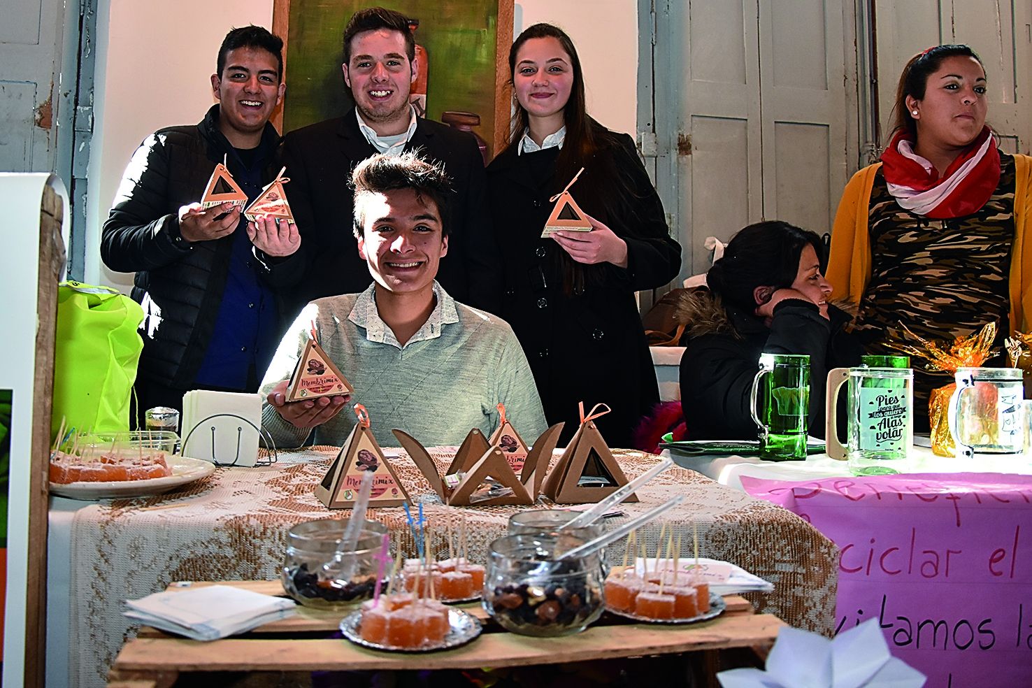 Se exhibieron productos como "Mi pequeño semillero", un kit de siembra para adultos y niños que se presenta en una caja que contiene dos bolsas de sustrato, semillas y contenedores plásticos para hacer los almácigos, el proyecto pertenece a la "Compañía Aromas" de la Escuela Agrotécnica de Zonda. Vendieron el total de las acciones externas y pronostican ganancias del 350%. "Autentique" es una línea de prendas de vestir realizadas con pintura ecológica y destacan los contenidos de sus mensajes impresos.