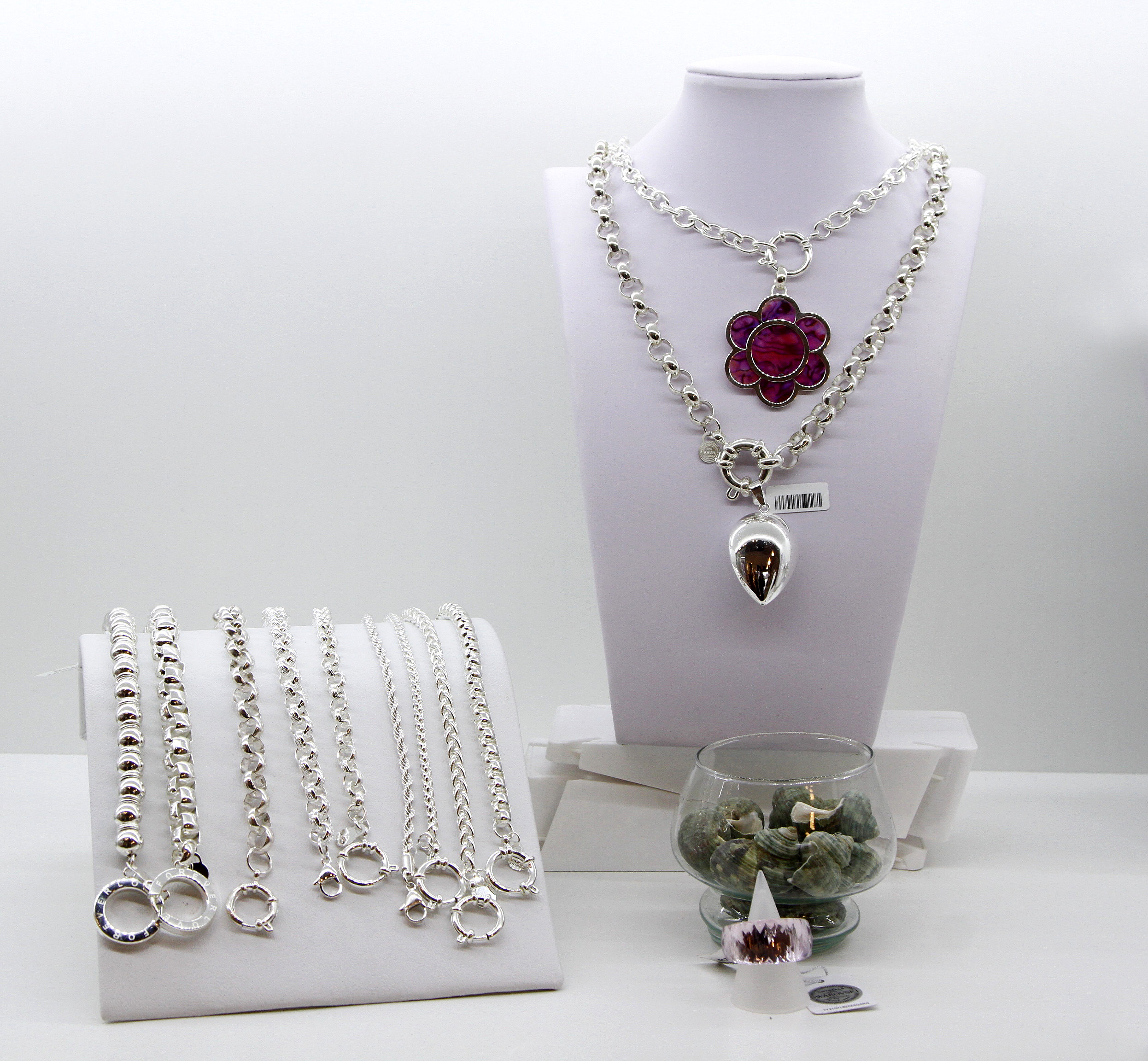 La línea de mujer, es más amplia ya que abarca no solo relojería sino también bijouterie y joyas de plata, plata y oro, acero quirúrgico y el innovador acero blanco que es mucho más económico. Hay marcas que visten a la mujer con estilo clásico y otras que marcan la moda actual, dijes personalizados, de plata, piedra o cristales originales Swarovski. Una línea exclusiva italiana Le Carose, unas muñequitas representativas del sur de Italia en collares muy distinguidos. Además, otra opción es una línea mexicana de collares con dijes grandes bañados en oro opaco y acompañadas por piedras, perlas y cordones de curo, Pulccino. Tanto de fiesta como lo chic urbano, está al alcance de la mujer con marcas como. Prune, Blaqué, Sweet, Tommy Hilfiger, Swatch, Monona, Capricho, Francesca Rossi, entre otras más.