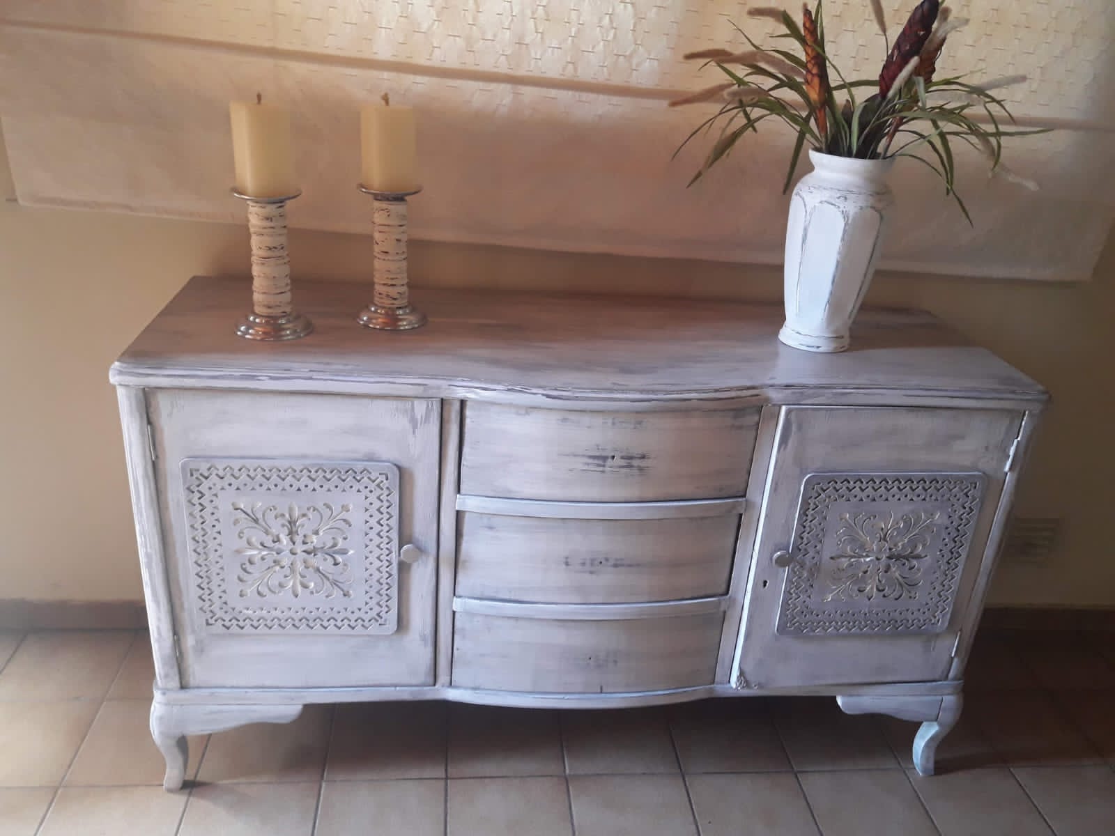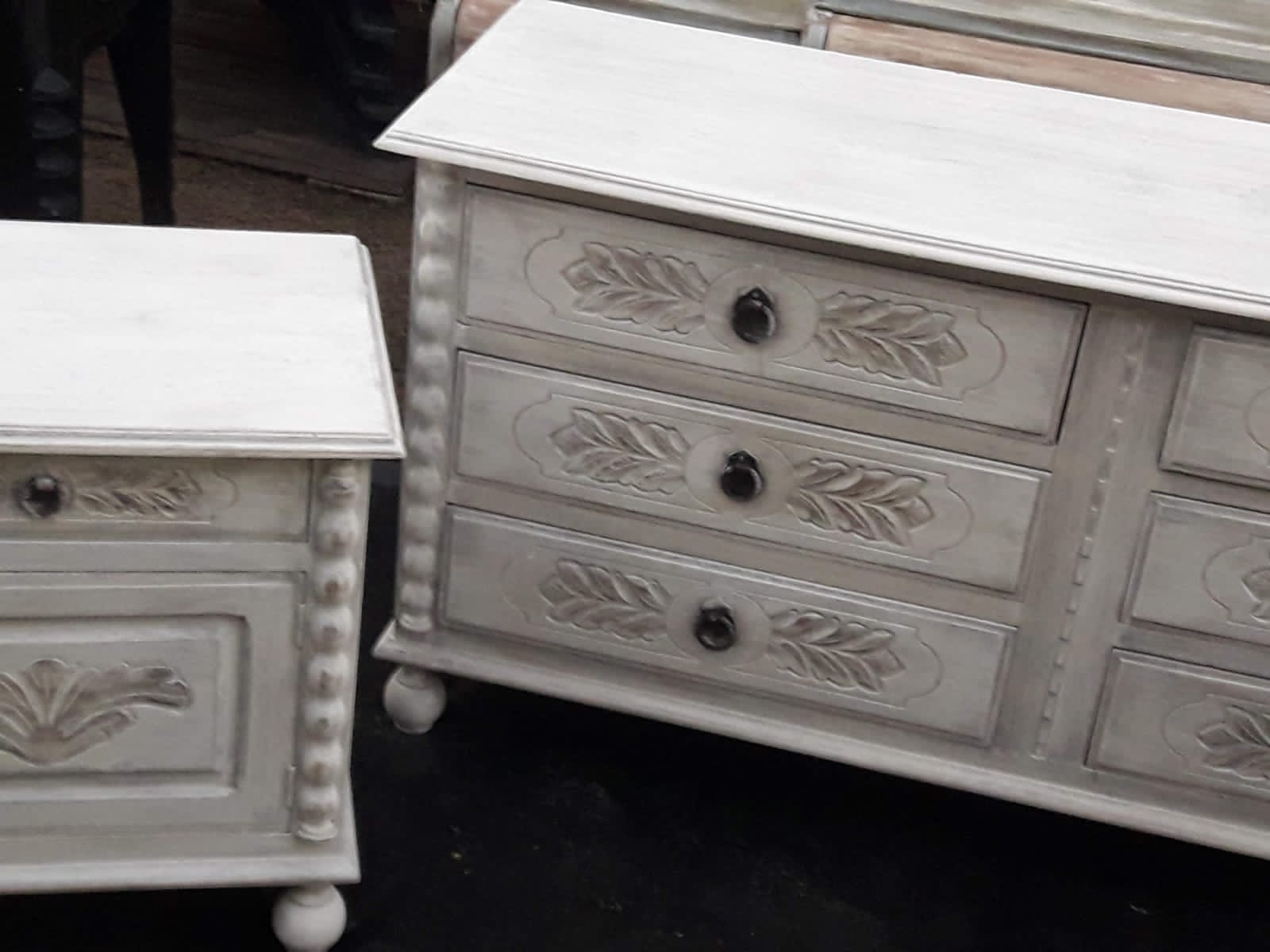 La gente hoy se deja llevar mucho por internet para seleccionar lo que quiere en cuanto a gustos, pero por lo general lo que más piden es el decapado en blanco. Decapado significa levantar capas, es decir un mueble que está marrón lustrado o pintado, se pinta con un marrón africano y arriba se le da pintura blanca, se va parafinando entre mano y mano y después se levanta con lija y van saliendo las capas y queda algo de marrón a la vista. Entonces el aspecto es envejecido, decapado, gastado, es el paso del tiempo en esa pieza. Esto se utiliza mucho, porque de repente el blanco lo integras a un ambiente más moderno o minimalista, pero con el decapado se le da un toque especial.