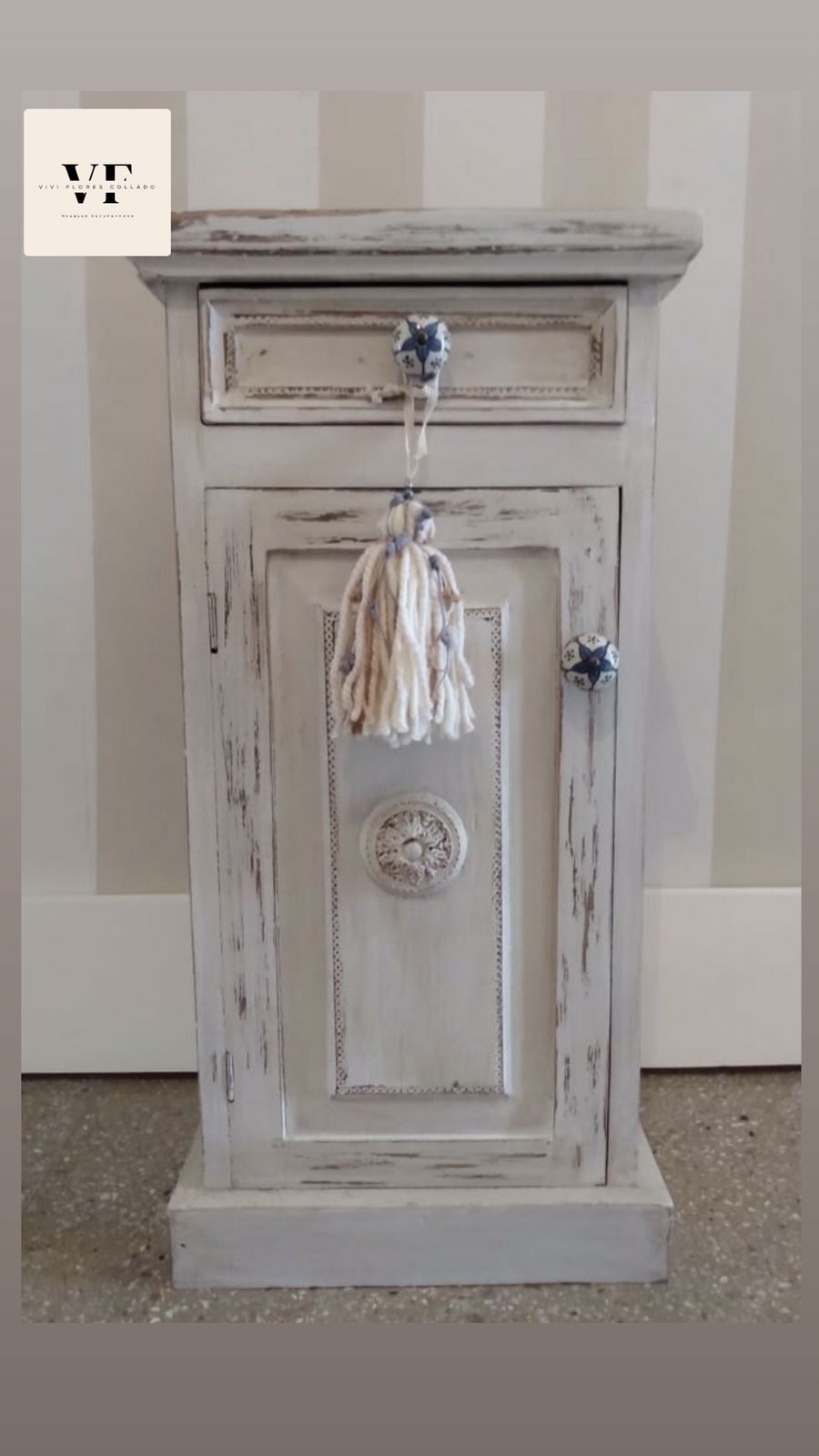 Las opciones de acabado o terminaciones hay una gran variedad y luego entra en juego la creatividad. Soy muy autodidacta, no soy de copiar tutoriales ni tuve maestros en mi tarea. Todo lo voy logrando de prueba y error, voy descubriendo y creando posibilidades y técnicas nuevas. De estas pruebas van saliendo opciones nuevas. Las opciones básicas son pátinas, decapados, envejecidos, etc. También se pueden incluir molduras, placas caladas con láser, entre otras más.