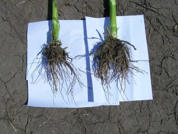 Aquí, las raíces cumplen un papel fundamental: son un centro productor de las hormonas vegetales llamadas citocininas. Estas se producen en la parte terminal de las raíces, específicamente en los pelos radiculares, cuya vida media es de 7 a 14 días. En concentraciones adecuadas de citocininas, la parte aérea de la planta recibe la señal de sintetizar auxinas, otra hormona vegetal que junto con la primera controla los procesos de división celular necesarios para el crecimiento y desarrollo de la planta. Es por esto que si las raíces disminuyen por alguna razón la síntesis de citocinina, este sistema deja de funcionar causando un desbalance hormonal que afecta negativamente a la planta.