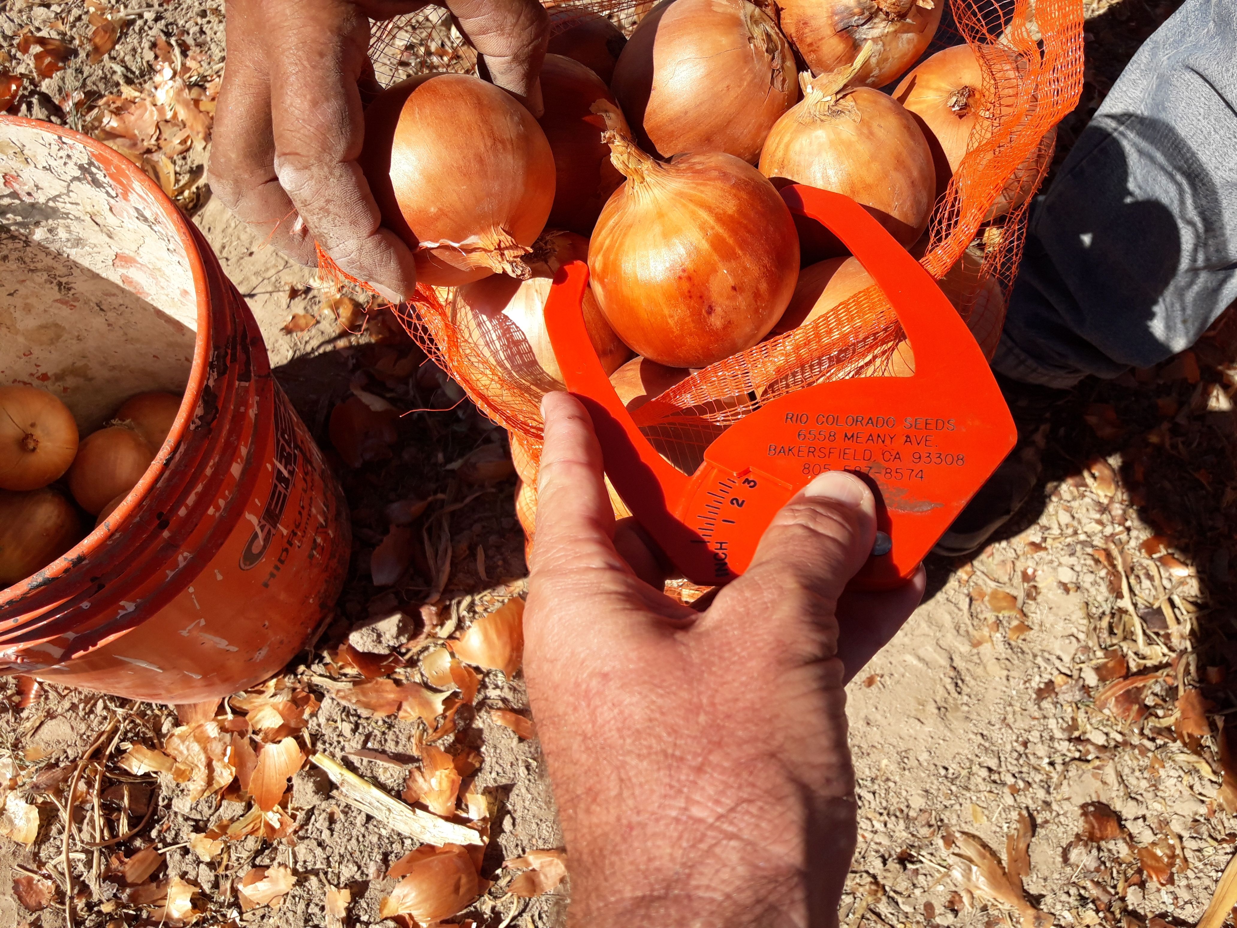 Respecto del tamaño, ver foto apertura, el hecho de hacer toda la selección y embolsada a mano, implica que haya habido algunos reclamos en los últimos envíos, por falta de homogeneidad. Se pida que la cebolla sea de 6 centímetros para arriba, o sea de 60 milímetros en medición de calibre.