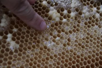 ¿Cómo detectamos este problema de fermentación de la miel? Por el olor. Es una miel avinagrada, una miel picada que a la vista se nota por la presencia de globos de aire en las celdas que, además, no están operculadas o cerradas. Esta miel no solo no sirve para nada, sino que además hay que aislarla del resto de la cosecha para no contaminarla y afectar la miel sana. Este fenómeno se ha repetido en varios apiararios que ya me han comentado este mismo problema otros apicultores.
