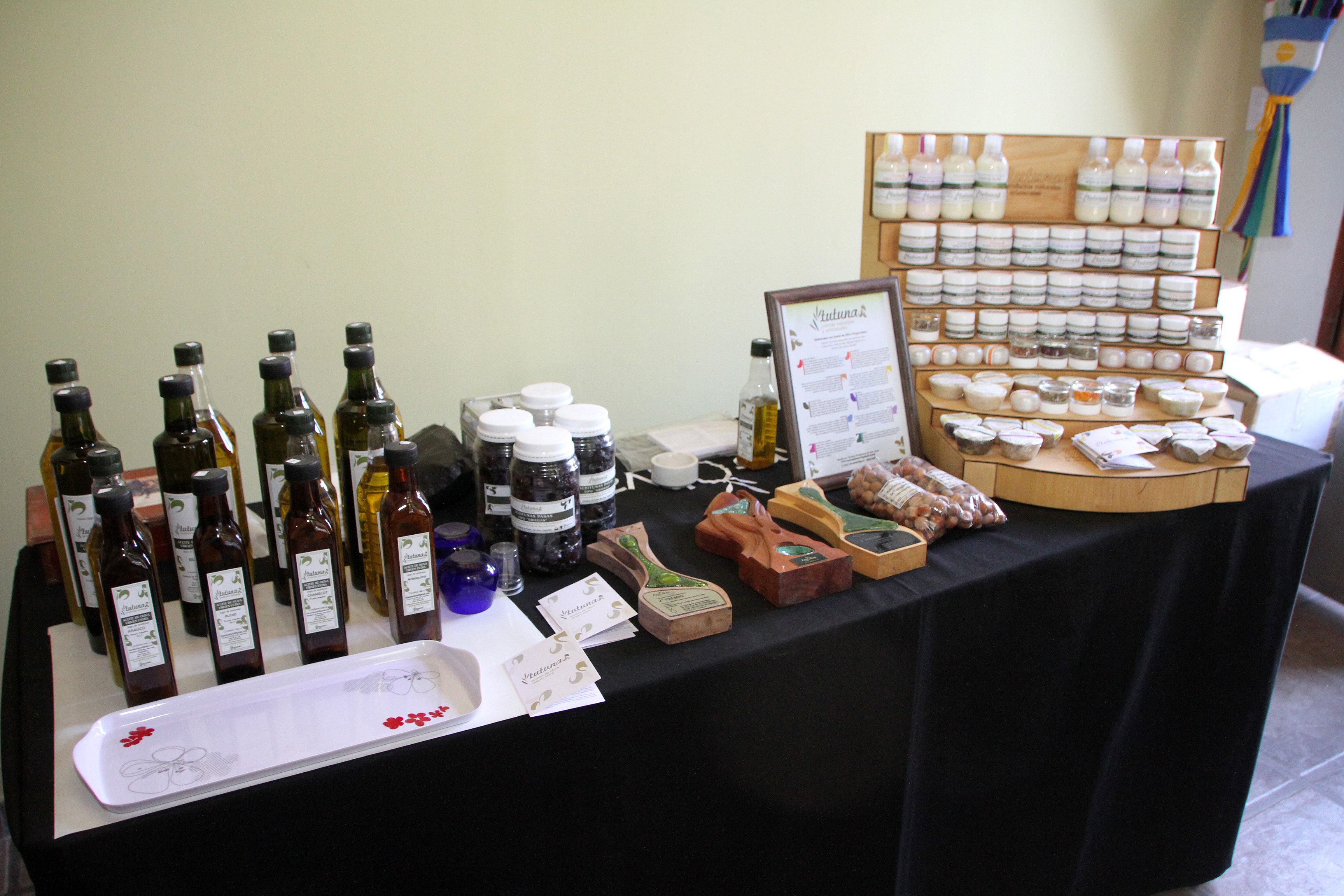 El producto principal y el más conocido del Olivo es sin duda el Aceite de Oliva, pero existen un conjunto de productos secundarios, bien derivados del Aceite de Oliva, bien elaborados a partir de aceitunas, o bien obtenidos a partir de subproductos del cultivo del olivo o de la producción de aceite de oliva virgen extra. Así es como el emprendimiento de Gisella Villareal y el Ing. Agrónomo Esteban Santipolio, esposos, llevan adelante su producción artesanal de aceite de oliva y cosmética agroecológica. Tutuna, es el nombre de los productos naturales y artesanales fabricados por ellos, situada en calle 14 y ruta 40, localidad de Pocito. Hace un poco más de 20 años que son propietarios de esas tierras donde cuentan con 9 hectáreas de cultivo de olivos con diferentes varietales trabajados en forma orgánica. La producción de aceite de oliva virgen extra es obtenida por extracción continua y elaborado artesanalmente. Esta fabricación de primera escala la realizan con su propia máquina italiana que trabaja por centrifugado. La recolección es manual entre los meses de abril y mayo y el método de extracción continua, en frío. Elaboran además, su propio compost obtenido con los con los desechos de la elaboración, para trabajar el suelo de la finca.