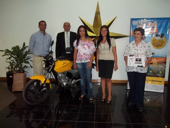 En el salón principal de Casa Matriz, se realizó la entrega de premios correspondientes a la campaña de Banco San Juan, "Tu vida más fácil" que consistió en el sorteo de 2 motos entre otros premios para todos los clientes que durante el año pasado utilizaron los medios de autogestión del Banco.
