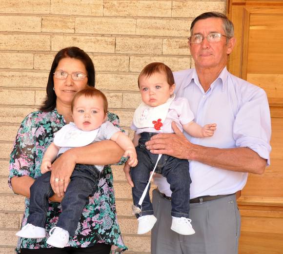 Nacieron el 21 de febrero último en la ciudad de Córdoba y fueron por partida doble: Juan Cruz y Bruno, que ya contaban con un hermano mayor, Mateo (6). Con tan sólo ocho meses sus padres dispusieron todo para el bautismo en San Juan y consiguiente almuerzo en el quincho que posee la mutual comercial de Santa Lucía, junto a casi un centenar de invitados lo que significó un reencuentro familiar. Juan Cruz y Bruno, son hijos de Marcela Caparrós (34), instrumentadora quirúrgica y su esposo, Horacio Bevilacqua (33), músico en el grupo de Jorge Rojas. Ella sanjuanina y él, cordobés. Fueron padrinos bautismales de Juan Cruz, Patricia Lomas y Sebastián Palacios. En tanto que para Bruno, lo fueron Jimena López Linares y Juan Manuel Iñones. Estuvieron sus abuelos: Olga Camargo y esposo, Miguel Ángel Caparrós con Leonor Leroux de Bevilacqua. La mamá describe a los mellizos como muy inquietos y derrochadores de simpatía.