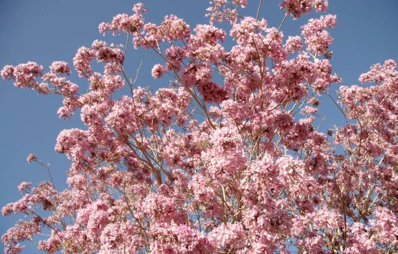 El cielo de San Juan se vistió de rosa, nos referimos a las flores del árbol de Lapacho y la avenida de circunvalación que rodea a la ciudad nos deleita con la floración del Espinillo.