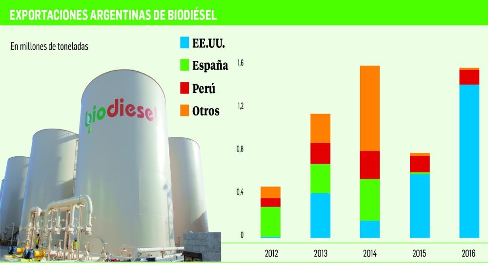 El 90 por ciento de las exportaciones de biodiésel argentino tenía como destino el mercado estadounidense en operaciones por entre 1.100 y 1.200 millones de dólares anuales, que los productores esperaban llevar este año a los 1.500 millones.