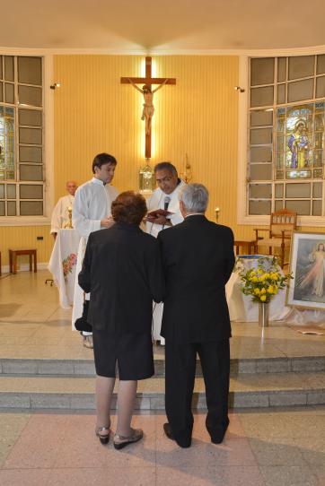Con una fiesta familiar celebrada en el salón Buenos momentos, junto a un centenar de invitados; celebraron sus bodas de oro matrimoniales, Lilia Clara Putelli (74) y su esposo, Salomón Nicolás Farrán (77), ambos ya jubilados como empleados del gobierno provincial. Tienen tres hijos, Néstor, fallecido aún adolescente; Raúl Osvaldo (47), periodista deportivo casado con Viviana Cárdenes y tres hijos, Victoria Luz (13), Nicolás Agustín (11) y Orlando Valentín (9). El tercer hijo es Martín Rodolfo (39), militar de Gendarmería Nacional, casado con Gabriela Gómez y cuatro hijos: Esteban (13), Federico (11), Guadalupe (9) y Milagros, de apenas año y medio de edad. Previo al momento de la cena, celebraron misa de acción de gracias en Nuestra Señora de Guadalupe. La recepción en la fiesta la encabezaron con flores, los nietos de la pareja. Lilia acompaña a su esposo a todas partes, dado que aún sigue trabajando particularmente. A menudo viajan a Mendoza y por supuesto, de vacaciones. Ella, jubilada antes, cultivó un grupo de amigas que sigue conservando y con las que ha recorrido y recorre, el país en distintos recorridos. Juntos, Lilia y Nicolás, disfrutan la familia y fundamentalmente, los nietos.