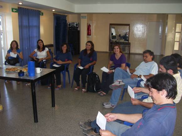 Una de las últimas reuniones tuvo como eje central el tema "¿Cómo aceptar aquello que no se puede cambiar?". Así los asistentes escuchan una presentación, luego la reflexión y un coffee break para que la gente siga charlando mientras llegan las conclusiones finales.
