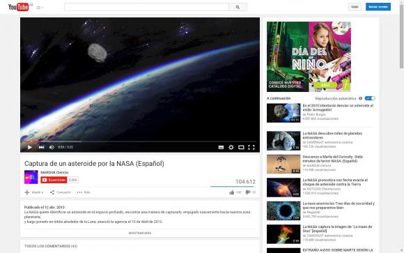 Este interesante y futurista video explica como la agencia NASA pretende próximamente capturar asteroides en el espacio y acercarlos a la Tierra para poder analizarlos y explotarlos mineralmente, para luego restituirlos a su órbita espacial.