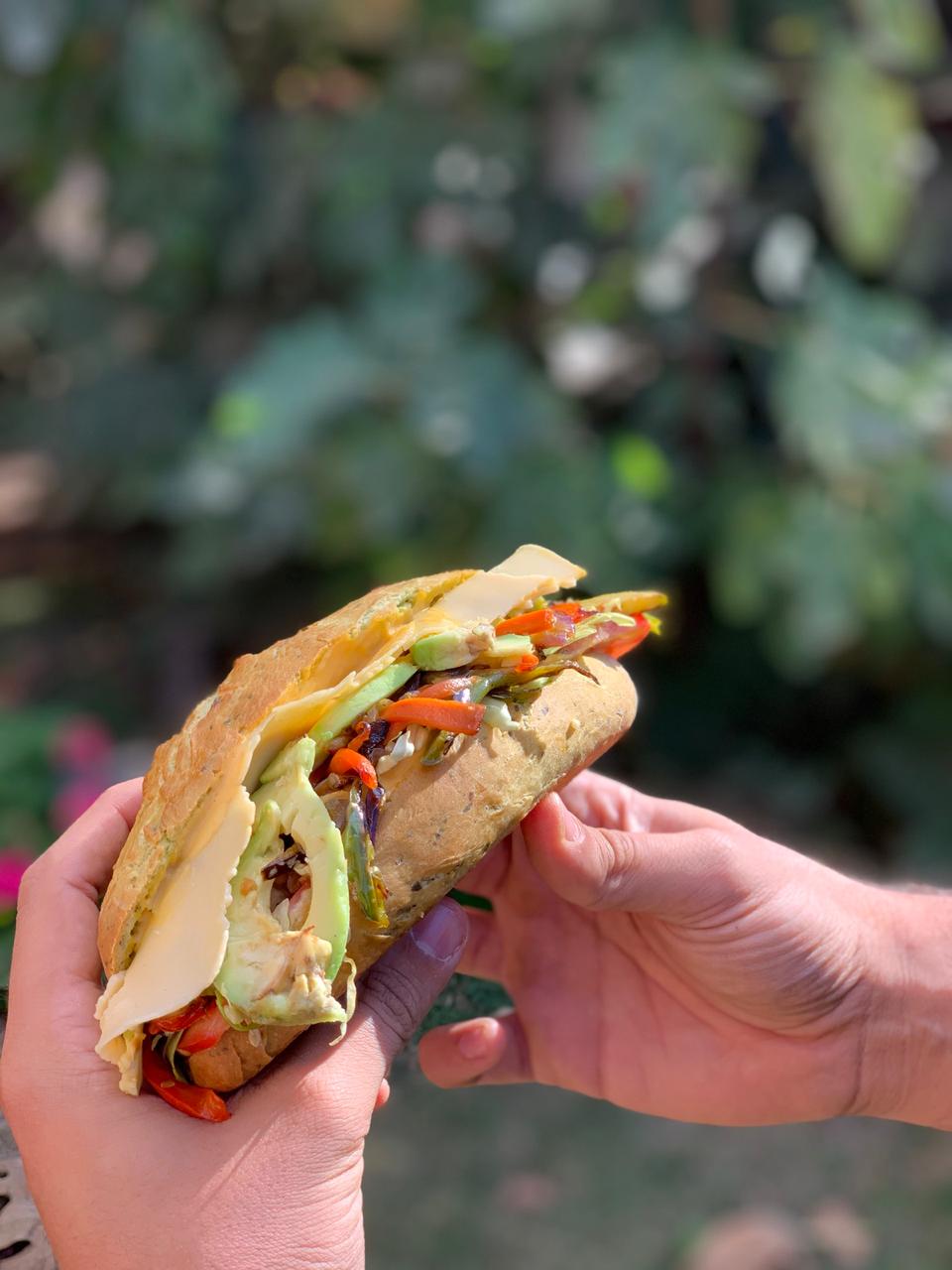 Sándwich de verduras en pan de espinaca