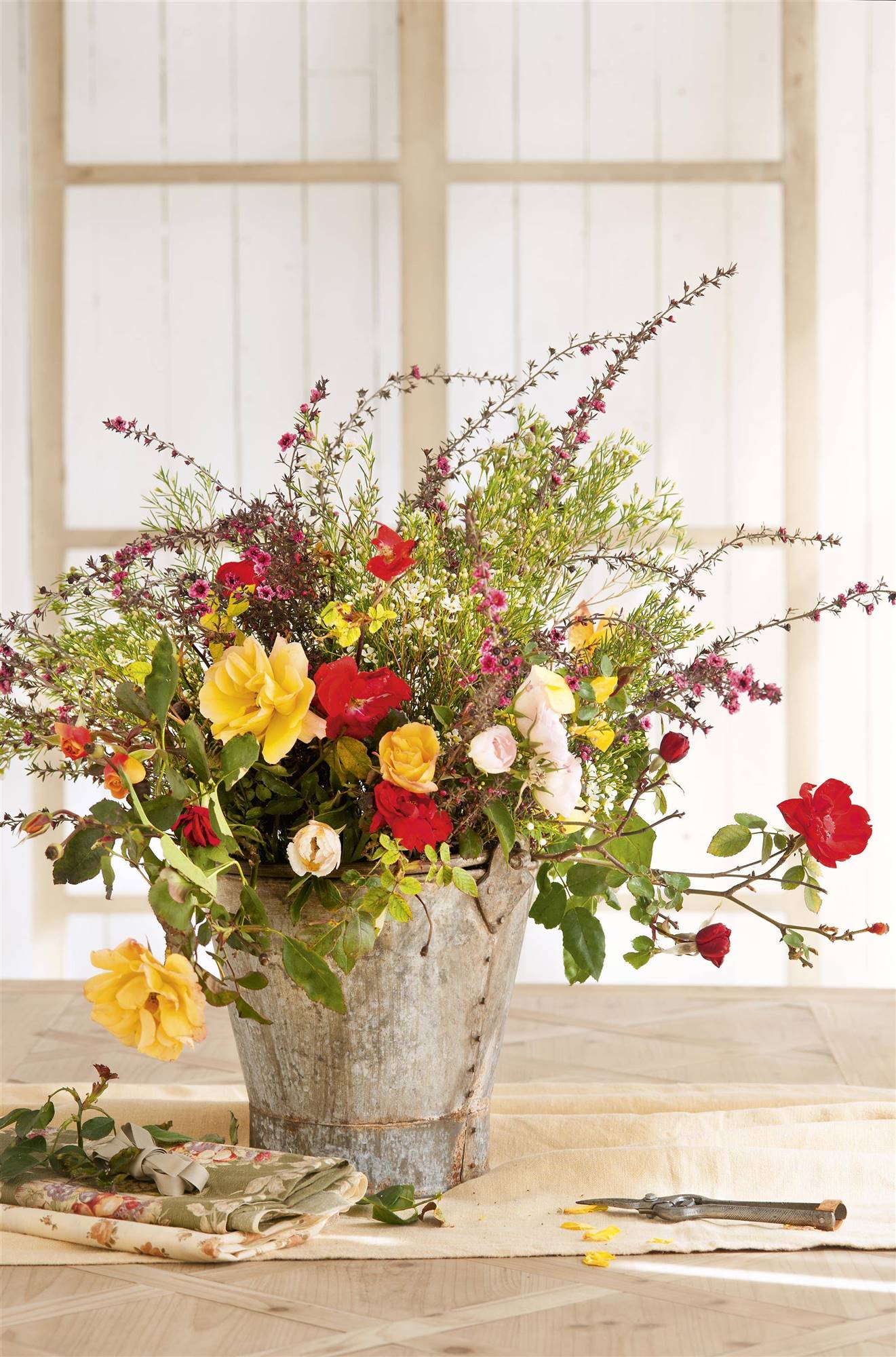 Desde los tonos más empolvados de rosa, tan de moda, hasta los más intensos, este ramo de rosas será el protagonista de cualquier rincón donde lo coloques. Y más fácil de confeccionar, imposible. Si eliges un recipiente de boca ancha, como este, deberás contar con más flores para llenarlo y que no queden huecos vacíos. Un consejo: intercala rosas de diferentes tonalidades, para que el conjunto se vea más dinámico.