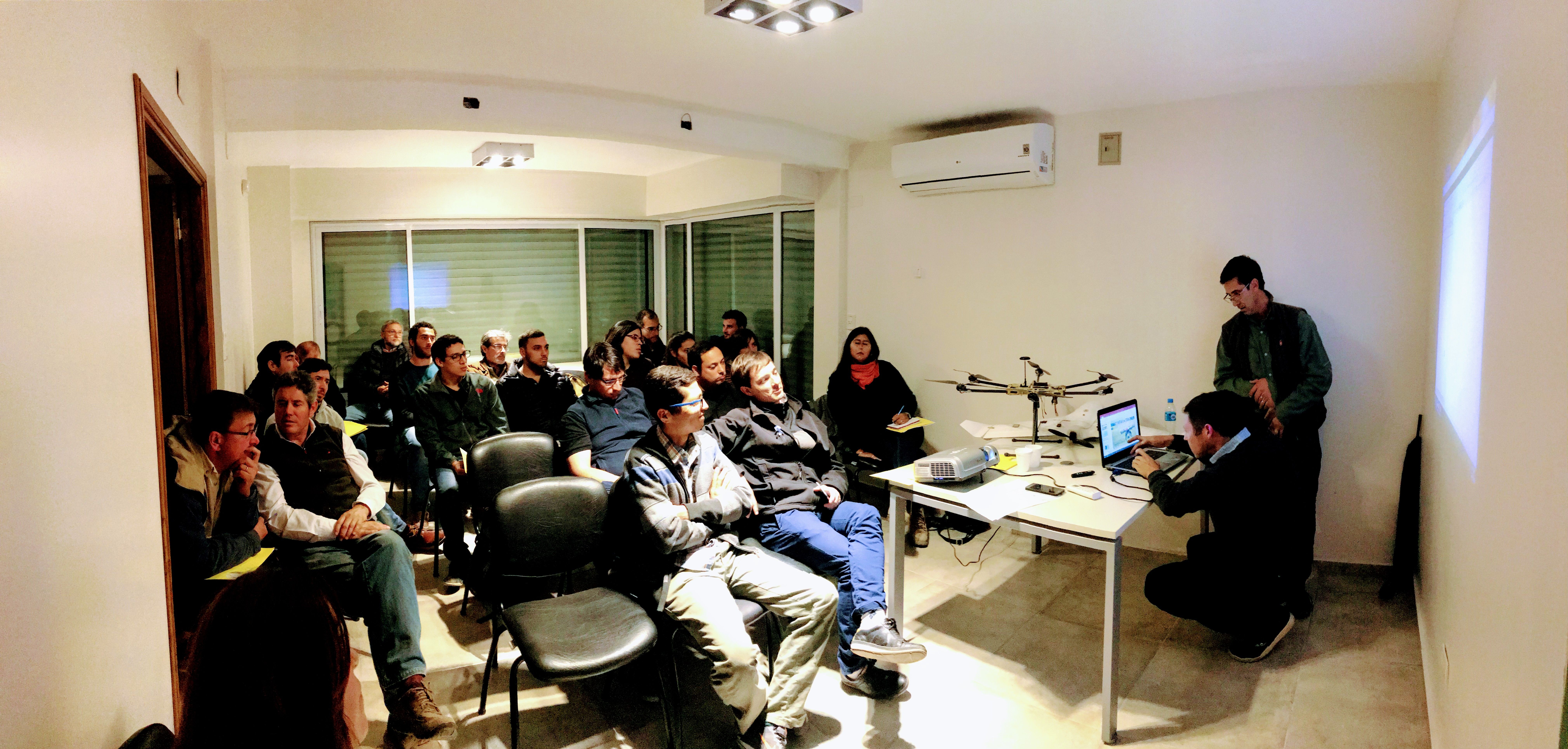 A continuación, expuso la ingeniera agrónoma Analía Díaz, de la empresa SupraImagen, introduciendo a los asistentes a los diferentes mapeos de cultivos y su uso en el campo, haciendo hincapié en los diferentes índices de vegetación utilizados. Se explicaron los momentos óptimos para realizar mapeos y se expusieron varios casos de relevamientos locales, abordando diversas temáticas de los cultivos más importantes de la región. Luego el ingeniero electromecánico Yamil Matilla expuso sobre las características de los diferentes drones que se utilizan para este tipo de relevamientos, y explicó en detalle la variedad de cámaras especiales utilizadas para la generación de mapas de estado de cultivo. Al término de la capacitación se realizó un ágape y la entrega de certificados a los presentes.