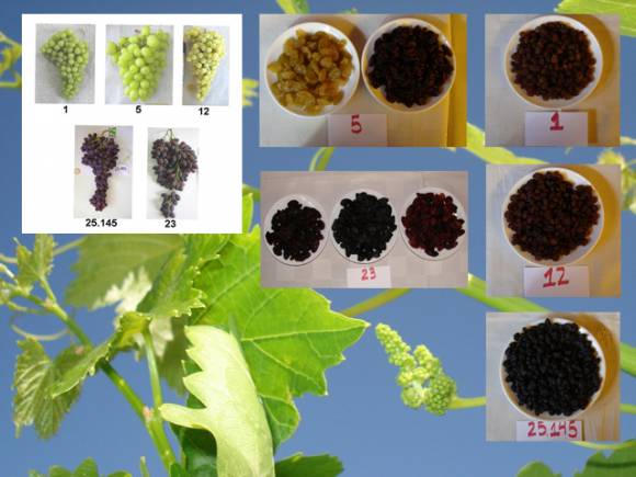 *Selección 23: Variedad morena, tamaño grande. Da una uva de color rosado, deshidratada al sol y en horno. Es de cosecha más tardía y fue bien evaluada para la producción de pasa por un calibre grande sin tratamiento de ácido giberélico. Es una variedad doble propósito, es decir, ha sido manejada para uva de mesa y para pasa.