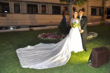 El vestido nupcial fue de la colección de "Emanuel", con el peinado de "Natalia y Eduardo", maquillada por Noelia Solís, para Falabella. De luna de miel partieron hacia las playas brasileñas de Camboriú. Fotos, gentileza de Mario Pereyra.
