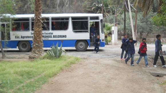 Tal como lo grafica la imagen tomada esta semana del colectivo de la Escuela Agrotécnica Manuel Belgrano del Departamento Jáchal. Unos 400 estudiantes concurren a este establecimiento rural y muchos de ellos lo hacen desde zonas otrora aisladas. Cabe destacar el aporte de los docentes para la adquisición de sendos colectivos.