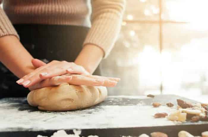 La masa se guarda de un día para el otro, donde se divide en varios bollitos y se estira dejando unos centímetros de espesor.