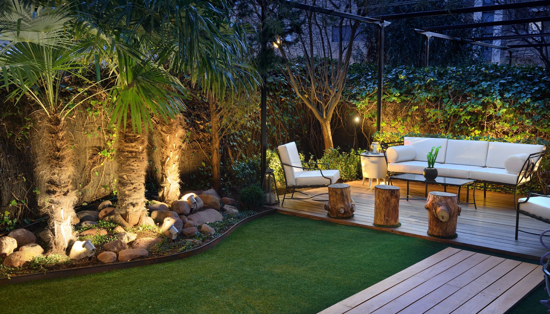 Si disponemos de un espacio pequeño, como puede ser de unos 30m., hay una tendencia natural a convertirlos en una especie de loft al aire libre, donde se unifican varios usos, como pueden ser el de comedor u otros usos mixtos (sitio de relajación y solárium o comedor con pequeña parrilla móvil) que podemos rodear de jardineras y vegetación. Por lo general, estos jardines no suelen disponer de césped.