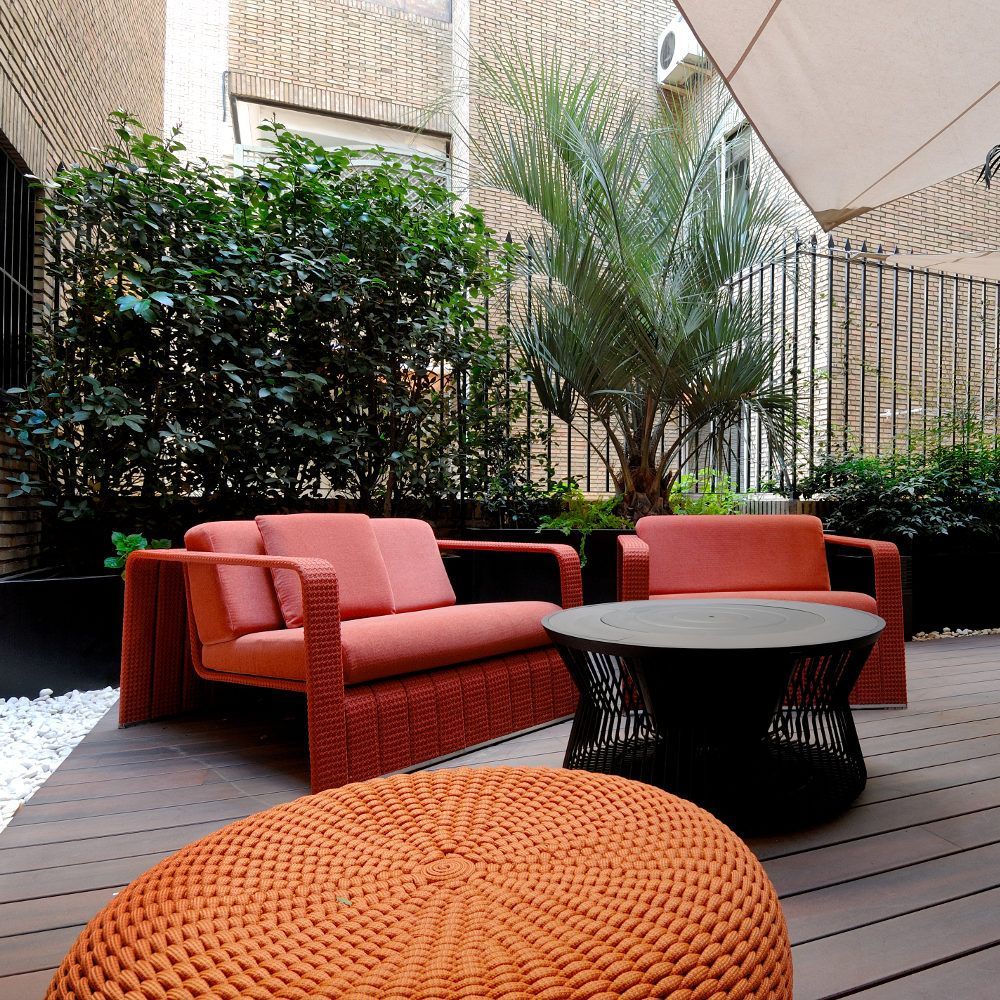 * Buscar la posibilidad de hacer un combinado de color entre interior-exterior, como por ejemplo con el pavimento, y también mediante el adecuado empleo de muebles de jardín, hamacas, tumbonas, puffs, y textiles como las alfombras, los estores, cortinas y mantelería exterior.