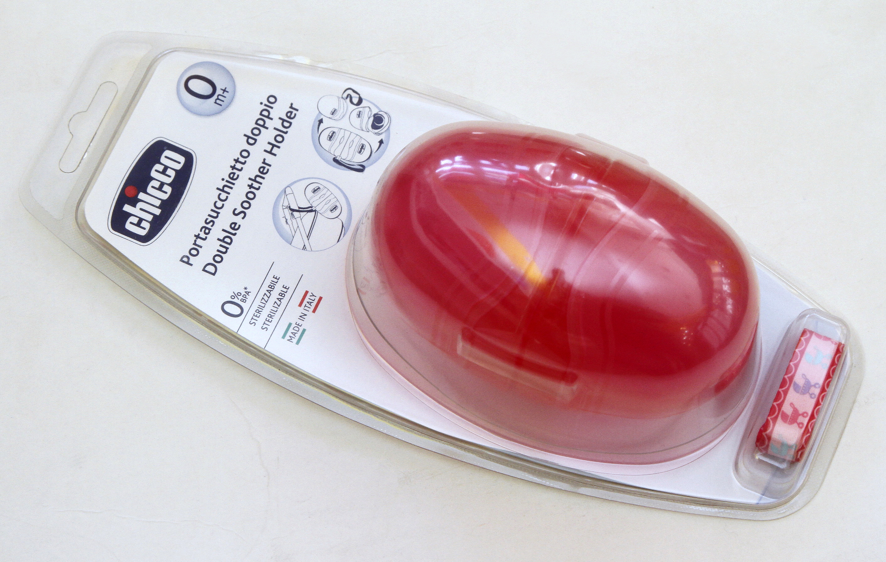 Huevo contenedor doble, de plástico rígido 100% esterilizable con cordón para colgar ($162, Chicco).