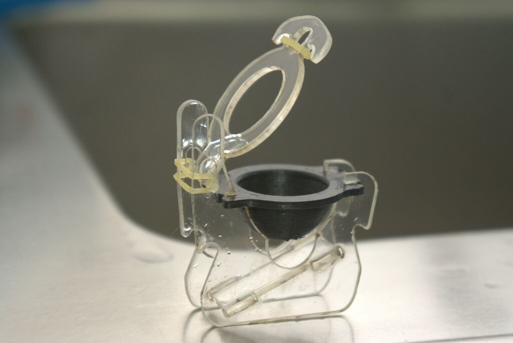Con el nuevo transportador se sostiene el ojo y se transporta sin que se dañe la córnea y se puede procesar la misma en forma más segura.