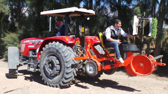 Después se pasó a la conformación de la cama de siembra, la colocación mecánica de la cobertura plástica o mulching biodegradable, lo que se hizo gracias a maquinaria de origen nacional, más precisamente fabricada en Pocito por un conocido taller metalúrgico. Se puede agregar en simultáneo la distribución de la cinta de riego por goteo si no se ha hecho anteriormente. Los productores pudieron observar cada paso de esta labor y evacuar sus dudas con los asistentes.