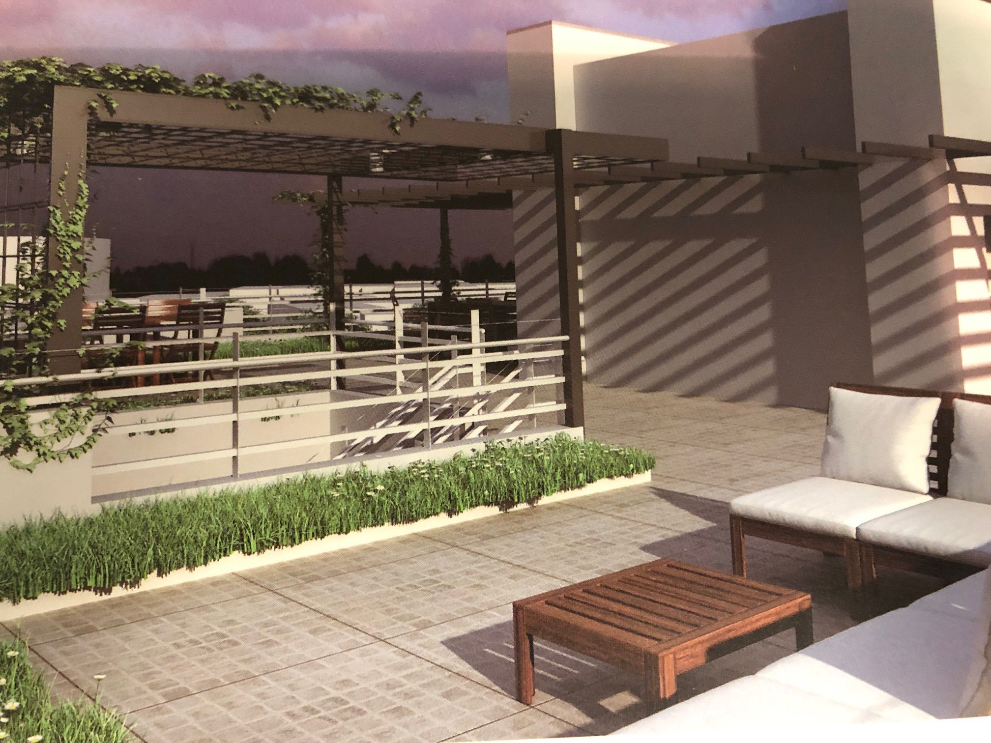 Las áreas comunes poseen portón automatizado, control de acceso peatonal y vehicular, con porteros en cada unidad funcional. Canalización para CCTV. Riego de espacios verdes con sistema de recuperación de aguas grises. Terrazas con parrilleros, pérgolas, baño y solárium. Sistema de emergencias con luces tipo Led. Iluminación interior y exterior tipo Led. Pisos exteriores de primera calidad. Jardines verticales. Red eléctrica subterránea. Red de agua y cloacas. Red de gas natural. Red de telefonía e internet.